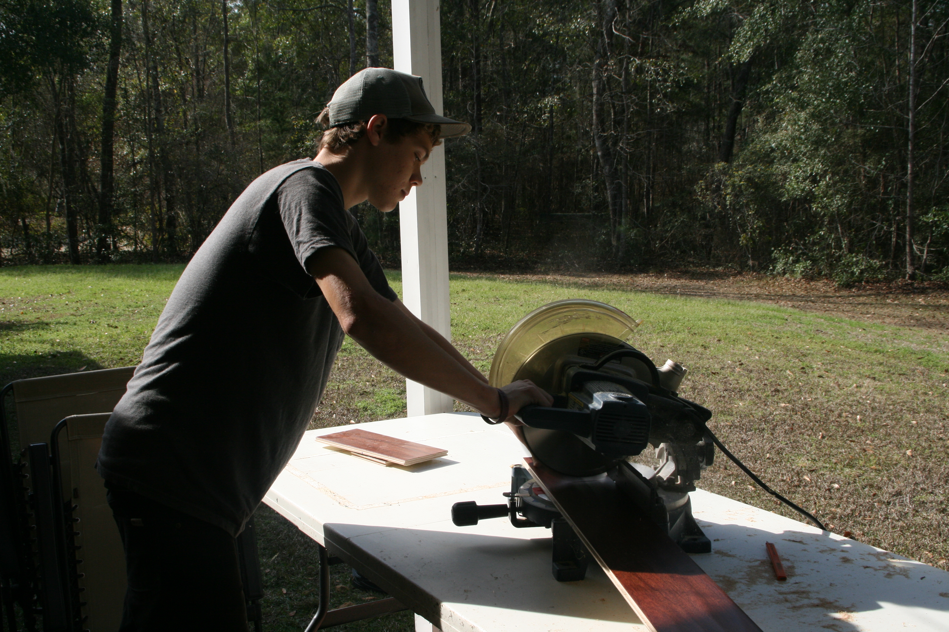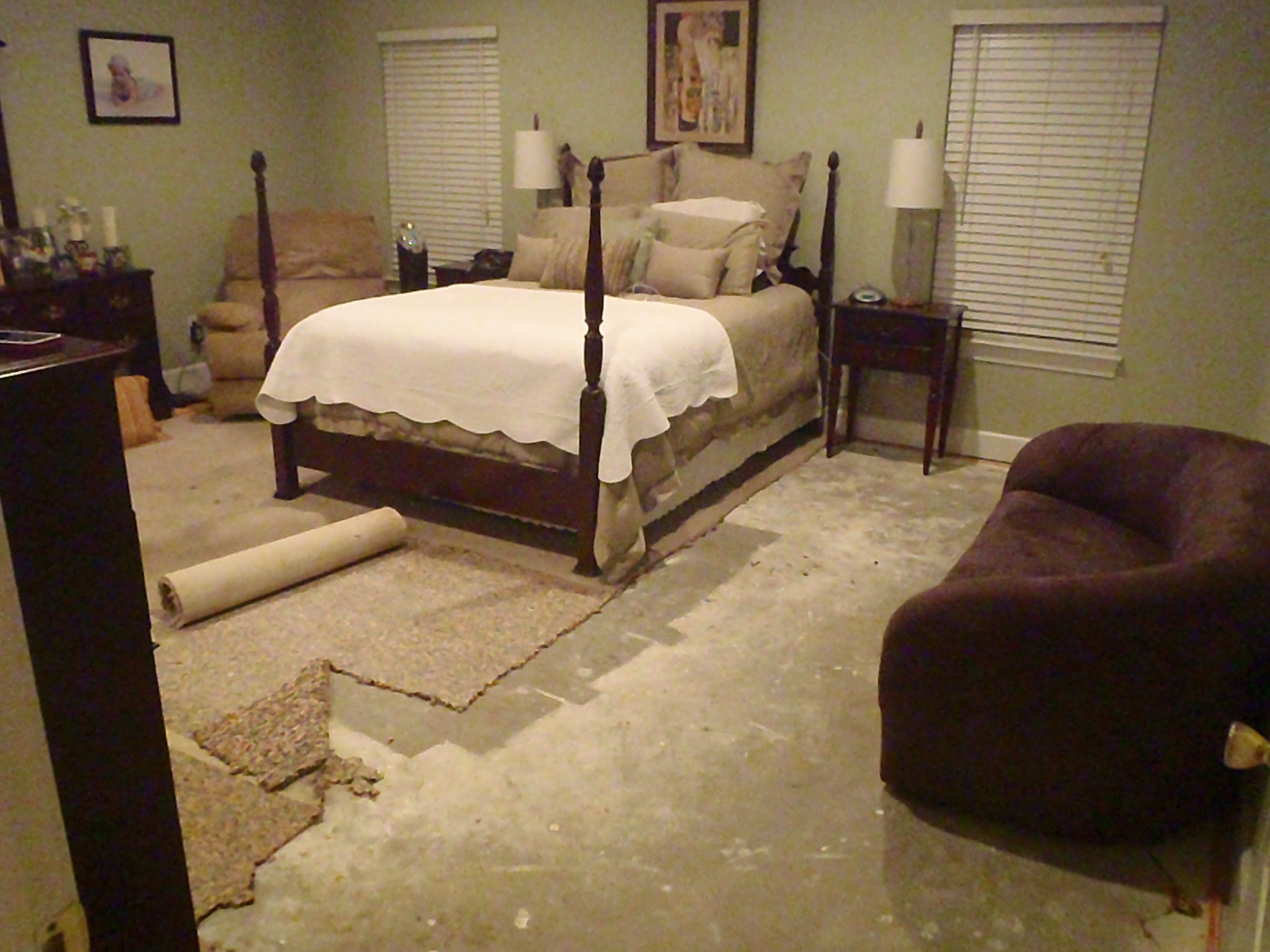 When Chris and I walked through what would become our home, the very first time, we told each other we would have to replace the carpet as soon as possible. That was August, 2004. Nearly eight years later we finally did just that – in our bedroom! (We are hopeful we will do the boys bedrooms this summer.) Because Conner, Chase and Chris all got a chance to work with Chuck last summer installing wood floors we felt like we could do all the labor ourselves. That was really the only way we would be able to afford to do this! We picked out a dark, hand scraped wood and let it sit in the house for about ten days to acclimate to the climate (humidity) of the house. During that time we were pulling up our carpet, prepping the concrete, repainting the walls and the baseboards and cutting under the door frames to allow for the extra height of the wood.